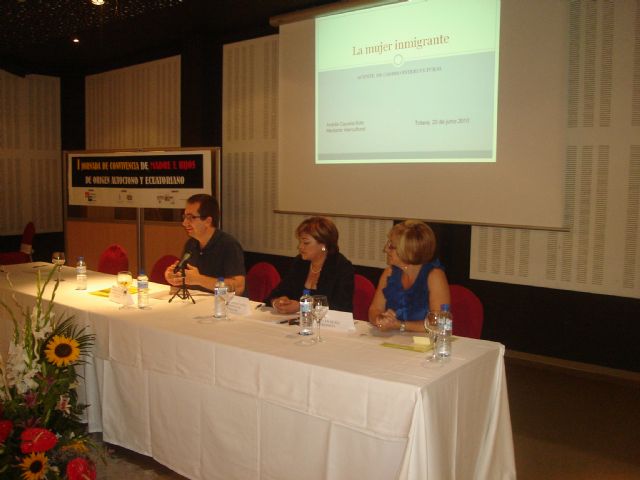 El alcalde de Totana, José Martínez Andreo, acompañado por la concejal de Mujer e Igualdad de Oportunidades, Josefa María Sánchez Méndez, asistieron a la "I Jornada de Convivencia de madres e hijos de origen autóctono y ecuatoriano" que se desarrollaron ayer en el "Hotel Executive Sport" del Polígono Industrial "El Saladar" de Totana.