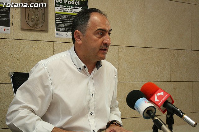 El concejal de Deportes, José Antonio Valverde Reina, ha presentado el II Torneo de Pádel “Fiestas de Santiago de Totana”, que se celebrará los días 3 y 10 de julio en las pistas de pádel de la Ciudad Deportiva “Sierra Espuña”.