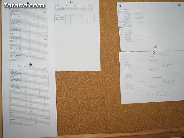 De Totana además de Domingo pasaron a la segunda fase Andrés David Ros, Julián Méndez, Vicente Carreño (que llegó a cuartos de final), Víctor Hernández, Juan José Cánovas y Santiago Aledo que dio la sorpresa del torneo eliminando en cuartos a otro totanero, Javier Andreo (campeón del año pasado).