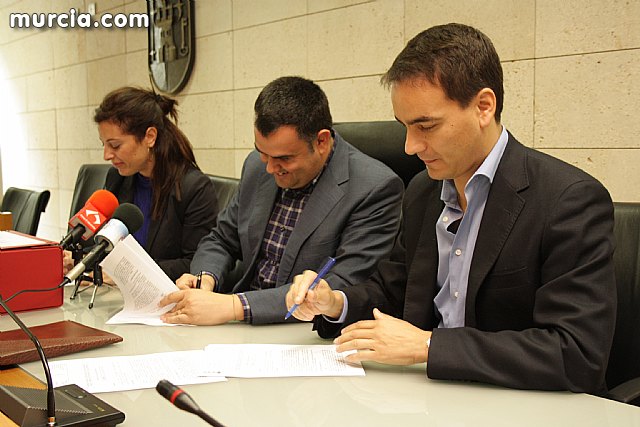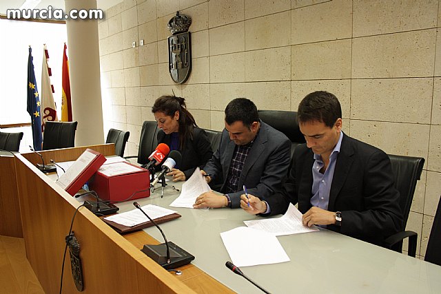 El alcalde de Totana, José Martínez Andreo, junto con la concejal de Educación Trini Cayuela, ha firmado con el representante de la empresa "Ferrovial Agroman", Jorge Sanz, el contrato de la construcción del nuevo colegio de doble línea que se llevará a cabo en la urbanización de La Ramblica y cuyo presupuesto tiene un coste cercano a los 3.000.000 euros.