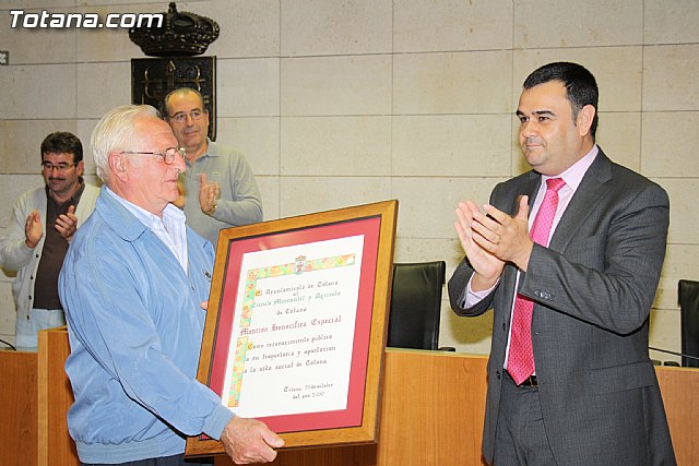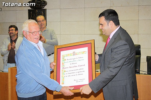 El Ayuntamiento de Totana, de manos de su alcalde, José Martínez Andreo, hizo ayer entrega al Círculo Mercantil y Agrícola de Totana de la Mención Honorífica Especial de la Leal y Ciudad Noble de Totana.