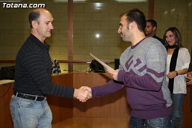 La concejal de Presidencia y Relaciones Institucionales, Josefa María Sánchez Méndez, y el concejal de Juventud, Juan Antonio Ambit, y los responsables de los cursos de informática, hicieron entrega de los diplomas a los alumnos del Proyecto RAITOTANA, en el que durante el segundo semestre del año 2010 se han formado en estas materias.