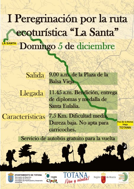 Esta iniciativa, que une el centro del casco urbano de Totana con el santuario de La Santa, será inaugurada el mismo día y se enmarca como una actividad novedosa en el programa de fiestas en honor a Santa Eulalia.
