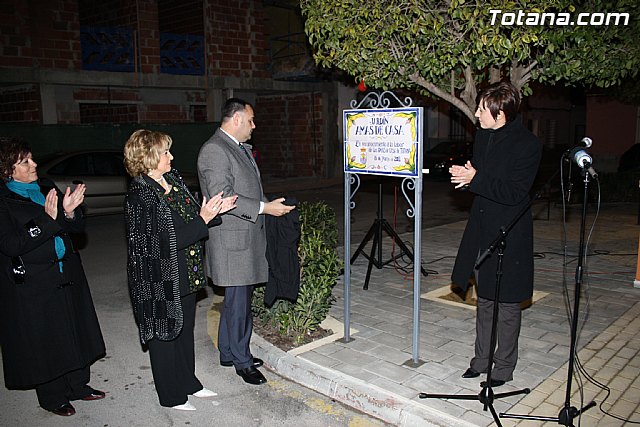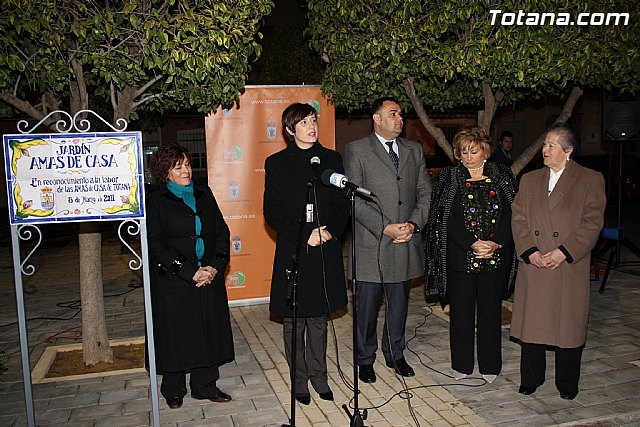El municipio de Totana, a instancias de una moción de Alcaldía que fue aprobada en el el último pleno de febrero, reconoce la promoción social en el ámbito familiar y profesional de la figura de la mujer como ama de casa. Desde ayer, el jardín ubicado en la calle Almacén, tiene el nombre de “Amas de Casa”, que fue inaugurado por las distintas asociaciones de mujeres del municipio, la edil de Igualdad, Josefa María Sánchez Méndez, y el alcalde de Totana, José Martínez Andreo, en el marco de las actividades organizadas con motivo de la celebración del Día Internacional de la Mujer.
