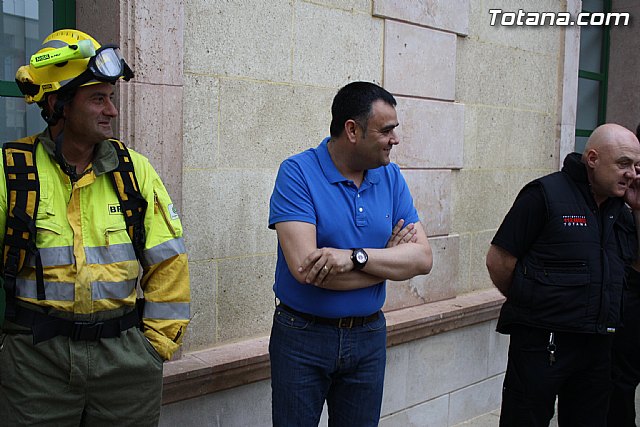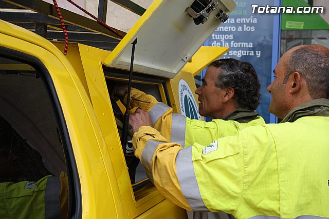 El alcalde de Totana en funciones, José Martínez Andreo, junto a miembros de los retenes forestales y de Protección Civil han dado a conocer el dispositivo de emergencias y el retén de vigilancia forestal para llevar a cabo el Plan Infomur 2011 que se ha activado hoy 1 de junio y permanecerá hasta final de septiembre, con el fin de controlar y evitar posibles incendios que amenacen el parque natural de la Sierra durante los próximos meses del verano.