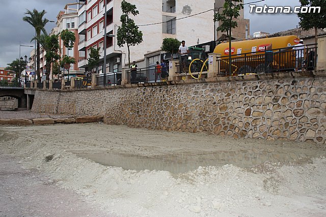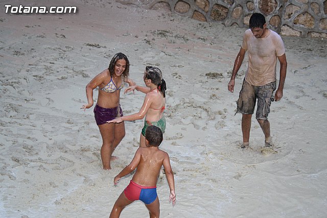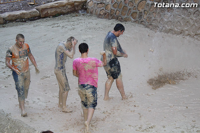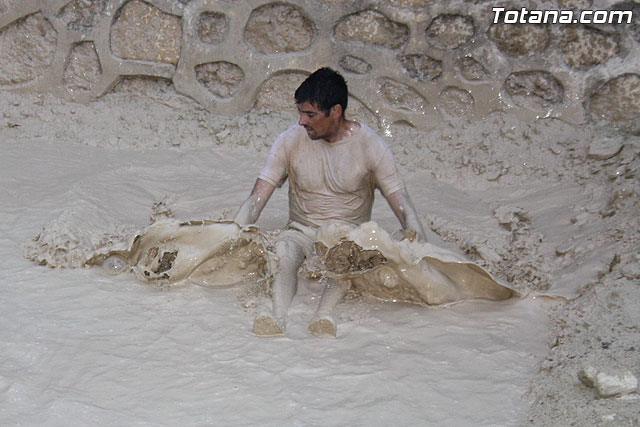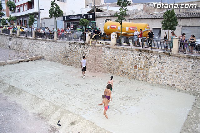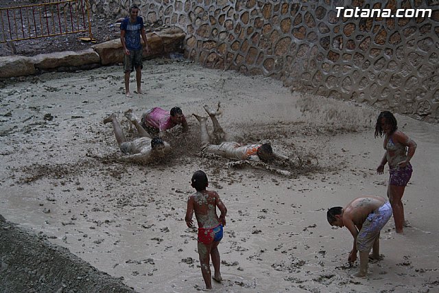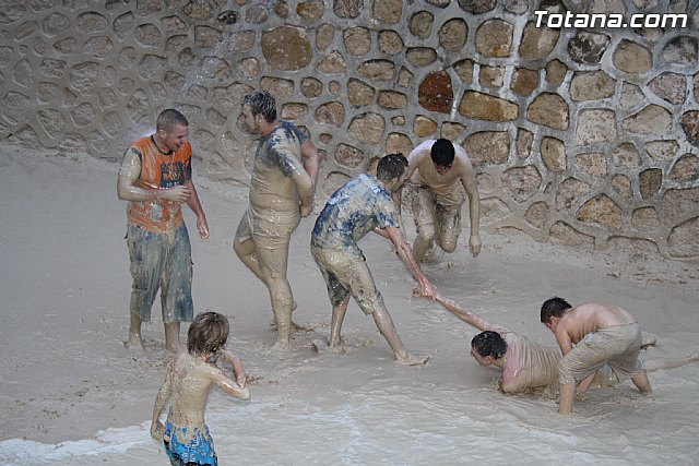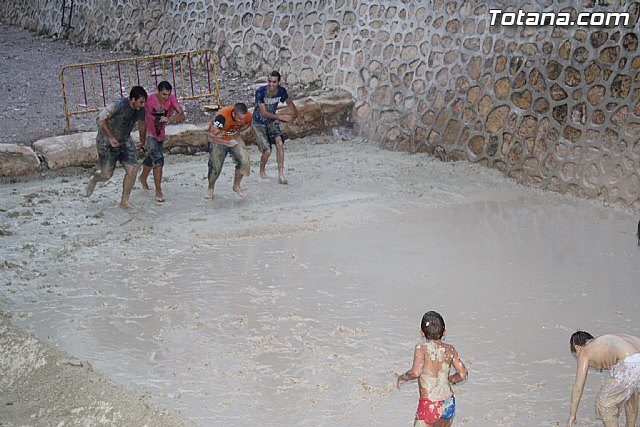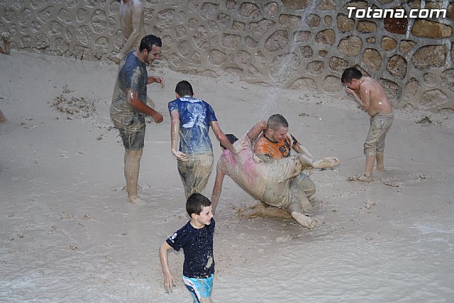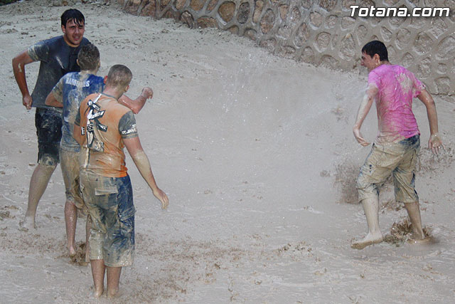Totana celebró ayer por primera vez una fiesta muy particular, la "Barrotina" en la que los participantes disputaron una 'guerra' de barro en la Rambla de La Santa a la altura del puente de Santa Rita.