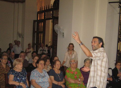 Como cada año, los treinta y cinco usuarios de los Centros de Día de Mayores, acompañados por el personal técnico y auxiliares que los atienden, visitaron ayer la Parroquia de Santiago el Mayor de Totana con motivo de la celebración del Día del Pilar, y cada uno de ellos les ofreció una flor y sus oraciones.
