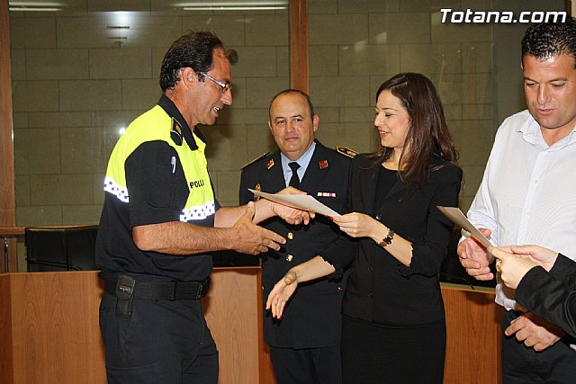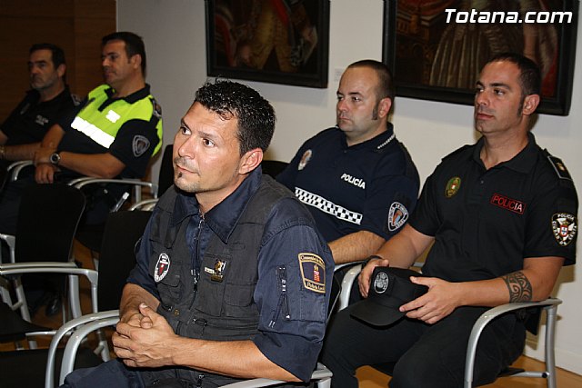 La alcaldesa, Isabel María Sánchez, y el concejal de Seguridad Ciudadana, Francisco Hernández, clausuraron el pasado 20 de octubre el IV Curso de Guías de Perros Detectores de Drogas, el cual está organizado por la Unidad Canina de la Policía Local de Totana y se ha desarrollado durante esta semana en Totana durante la celebración del I Encuentro Interpolicial de Unidades Caninas de la Región de Murcia.