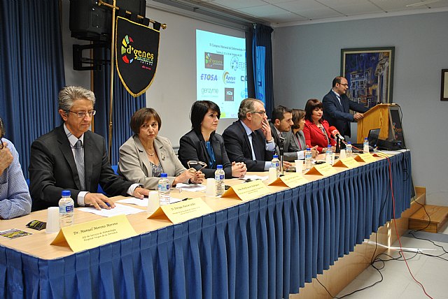 La alcaldesa de Totana, Isabel María Sánchez Ruiz, y el director general de Atención al Ciudadano y Drogodependencias de la Consejería de Sanidad, Juan Manuel Ruiz Ros, junto con la representante de la Delegación del Gobierno en materia de Sanidad, Purificación Rodríguez, y representantes de todos los estamentos sanitarios de la Región, entre otras personalidades han inaugurado el “IV Congreso Nacional de Enfermedades Raras” que se celebra durante todo el fin de semana en Totana.
