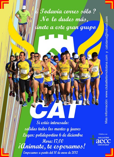 El Club de Atletismo Totana, desde su recién renovada directiva, quiere impulsar y fomentar la practica del atletismo entre lo ciudadanos de Totana y pueblos vecinos. Para ello está llevando a cabo una campaña en la que se invita a aquellos que practican atletismo por su cuenta y normalmente solos, a unirse al Club en sus salidas y entrenamientos, así como a los que se quieren iniciar, organizando al efecto quedadas ciertos días de la semana, para correr en grupo y hacer la practica de este deporte mas amena.