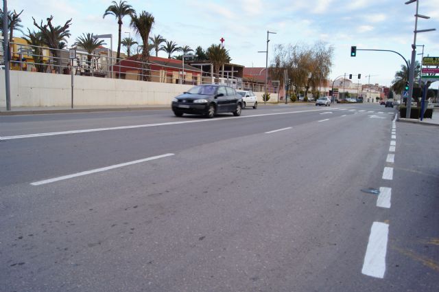 Operarios de la Concejalía de Infraestructuras y Servicios a la Ciudad está realizando trabajos de repintado de la señalización horizontal y mantenimiento en la avenida Juan Carlos I, desde la rotonda de la rambla de Las Peras hasta el edificio de la Cruz Roja, según informan fuentes de este departamento.