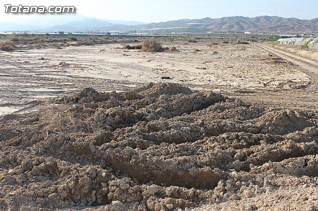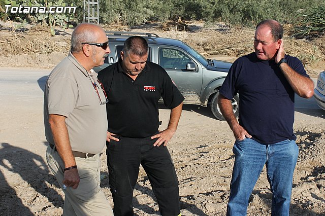 El presidente de la Confederación Hidrográfica del Segura, Miguel Ángel Ródenas, ha visitado esta tarde Totana para conocer sobre el terreno las zonas más afectadas por las inundaciones en este término municipal, quien estuvo acompañado por la alcaldesa, Isabel María Sánchez, el presidente de la Comunidad de Regantes local, Juan Pagán, y representantes de organizaciones agrarias locales.