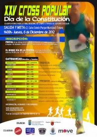 El XXV Cross Popular "Día de la Constitución" de Totana, que organiza de Concejalía de Deportes, se celebrará el 6 de diciembre en las diferentes categorías con motivo del programa de actividades deportivas de las fiestas patronales de Santa Eulalia´2012, cuya inscripción previa se puede realizar hasta las 14 horas del próximo día 4 de diciembre en la web www.asuspuestos.com p en la Concejalía de Deportes.