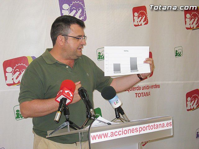 En estos momentos asistimos a una campaña publicitaria por parte del gobierno regional de autobombo en materia económica que no se traduce ni en programas ni en inversiones. Desde IU se quiere denunciar que la política actual de recortes lo único que va a ir originando es un deterioro aún mayor de la economía y del mercado de trabajo con un aumento del paro. "No es de recibo que en un municipio como Totana donde se está llegando a una tasa de paro cercana al 30% no se invierta ni un euro en programas públicos para dinamizar el tejido industrial ni desde el Ayuntamiento ni desde la Comunidad Autónoma amen del gobierno Nacional…" apostilla Pedro Martínez.