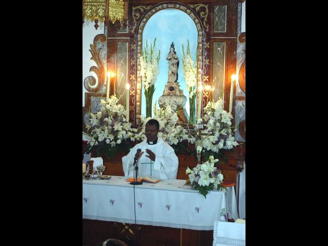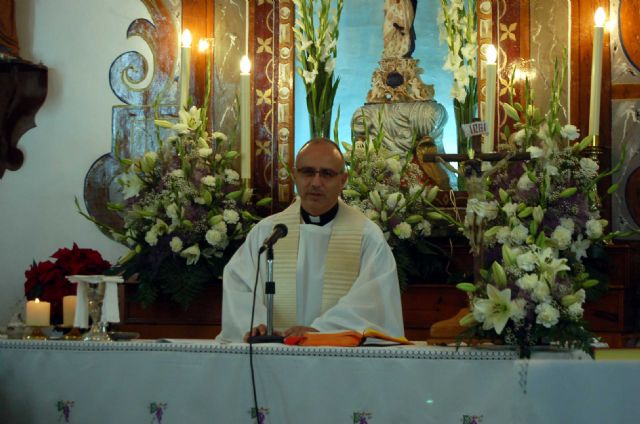 La Misa del día 01 de enero fue celebrada por D. Ramón Mitogo Mitogo, coadjutor de la parroquia de Santiago, que celebró con los huertanos la festividad de Santa María Madre de Dios y el comienzo del Nuevo Año 2013.