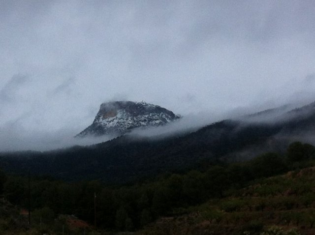 Protección Civil en Totana informa que se han registrado las primeras nieves del invierno en el parque regional de Sierra Espuña, de forma que las precipitaciones de las últimas horas se han manifestado en forma de nieve a partir de los 800 metros de altitud, donde se han alcanzado hasta sesenta centímetros de altura.