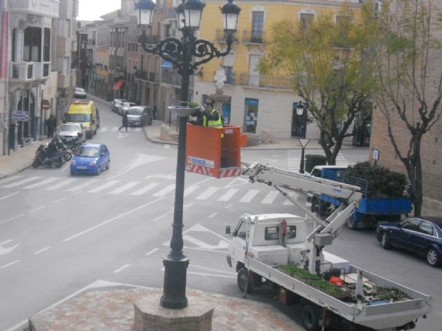 Operarios municipales están realizando trabajos de poda, colocación de flores ornamentales en parterres y farolas y renovación de las mismas.
