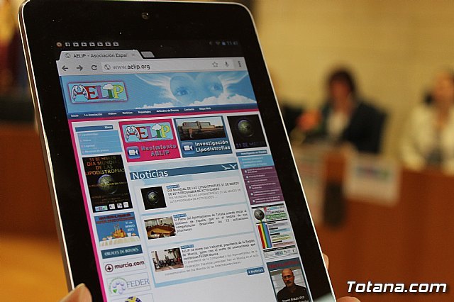 La concejala de Sanidad, Eulalia Sandoval, y la presidenta de la Asociación de Familiares y Afectados de Lipodistrofias (AELIP), Naca Eulalia Pérez de Tudela, han presentado recientemente la nueva página web www.aelip.org de la asociación, en un acto celebrado en el salón de plenos junto a otros miembros de esta entidad.