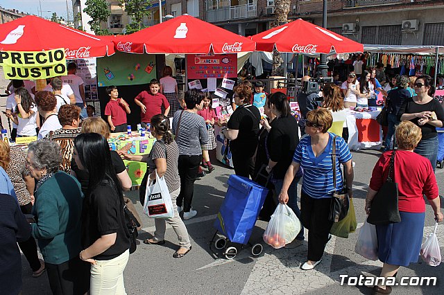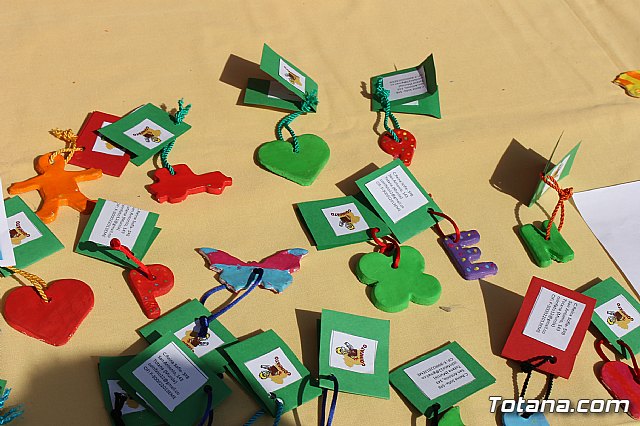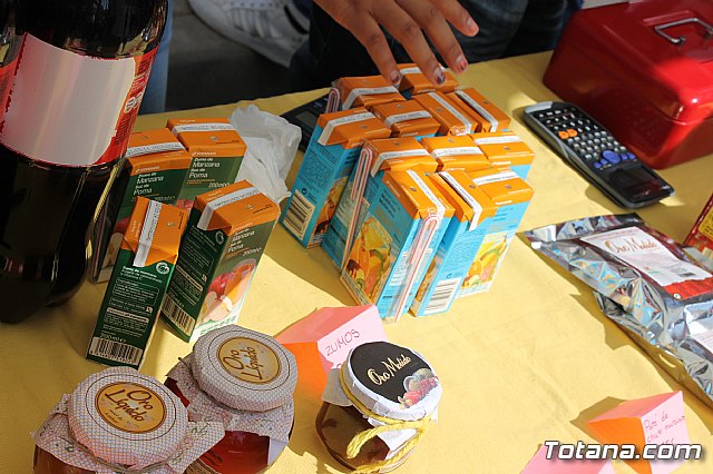 Hasta el punto de venta instalado en el mercadillo se han trasladado la alcaldesa de Totana, Isabel María Sánchez, y las concejalas Josefa María Sánchez, María José Baeza y Belén Muñiz para conocer de primera mano el resultado de estos proyectos en los que colabora también la Concejalía de Educación.