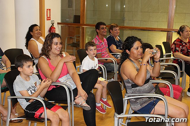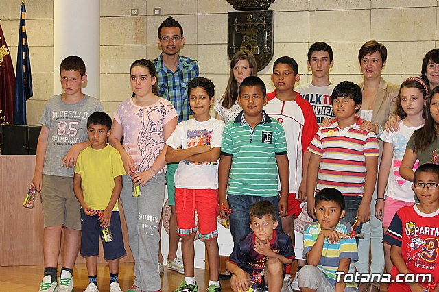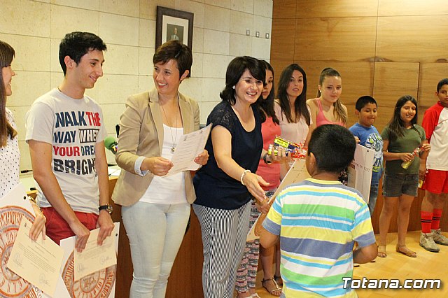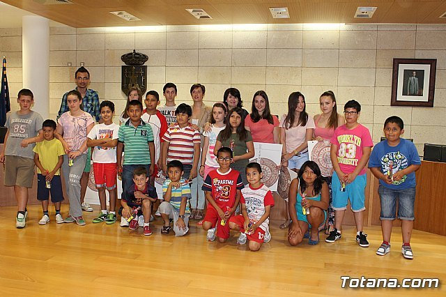 Los 35 niños, junto con los siete jóvenes, participaron en la clausura que fue presidida por la alcaldesa de Totana, Isabel María Sánchez, y la concejal de Educación, Josefa María Sánchez, quienes agradecieron la labor personal que cada uno de los jóvenes maestros han realizado con los pequeños en los distintos colegios.