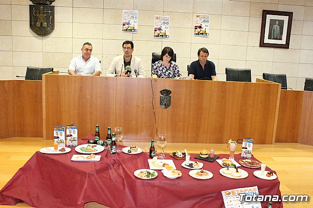 La alcaldesa de Totana, Isabel María Sánchez, que ha presentado la iniciativa, junto al concejal de Cultura Popular y Festejos, Alfonso Cayuela, el presidente de la Asociación de Hosteleros, Agustín Escarabajal, y el presidente de los Pasteleros (Asparto), José Martínez, ha agradecido el esfuerzo que realizan todos los sectores de la hostelería para que cada año esta ruta tenga más calidad y atraiga a un mayor número de visitantes durante las fiestas de Santiago.