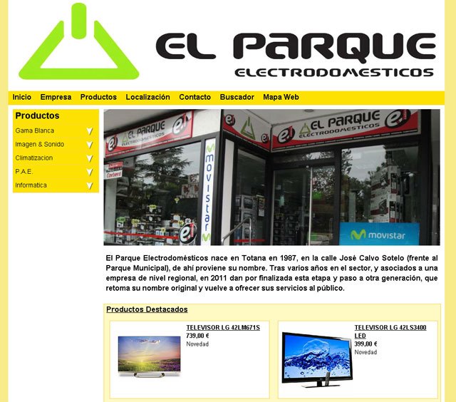 La página web de El Parque Electrodomésticos ha sido desarrollada con “Superweb Pack Catálogo”