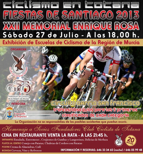 El XXII memorial Enrique Rosa de Ciclismo tendrá lugar el próximo 27 de julio, enmarcado en las Fiestas de Santiago 2013
