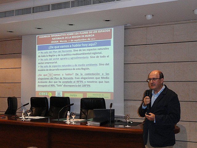 Un centenar de directivos de asociaciones de propietarios en espacios naturales, de responsables de las Uniones de COAG y de cooperativas agrarias de la zona del Valle del Guadalentín, y en concreto de Lorca, Águilas,  Puerto Lumbreras, Totana, Alhama y Mazarrón; participaron ayer miércoles 11 en una Asamblea informativa en el salón de actos de CROEM en Murcia, en la que bajo la convocatoria de COAG, FECOAM, FAPEN y las Asociación de Empresarios del Noroeste, se analizó el estado de desarrollo de los planes de los espacios naturales del Noroeste y de toda la Región de Murcia.