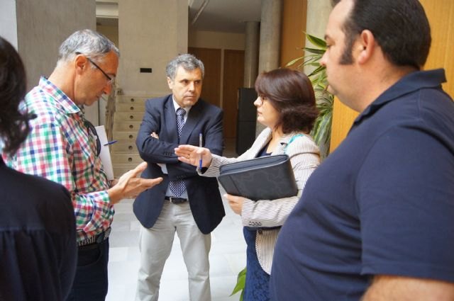 La alcaldesa, Isabel María Sánchez, y el concejal de Agricultura y Agua, Diego Muñoz, acompañado por José Rodríguez, del órgano comunero de Totana, asistieron a la reunión que se celebró en la sede de la Cámara de Comercio de Lorca.