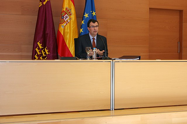 El portavoz del Ejecutivo murciano, José Ballesta, en la rueda de prensa para informar de los asuntos tratados por el Consejo de Gobierno.