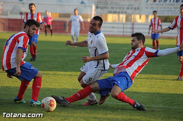 El partido tuvo dos tiempos bastante diferenciados, durante la primera mitad los ataques se sucedían en ambas porterías aunque era el Yeclano el que dominaba el juego y pisaba mas el campo del Olímpico así en el minuto 41 del primer tiempo y tras un saque de esquina se adelantaban en el marcador los del Altiplano. Justo a renglón seguido en el 44 un clamoraso error arbitral al no señalar una falta de un atacante visitante acaba en penalti y expulsión por segunda tarjeta amarilla al local Campoy quedándose el Olimpico con un jugador menos; a raíz de ese momento el partido se convirtió en un quiero y no puedo del equipo totanero.