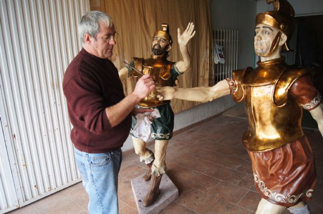 Por su parte, el arreglo y restauración de las imágenes y enseres del grupo escultórico las está realizando en su taller de la "Venta de Los Pinos" el camarero de la hermandad, el artista totanero Francisco Javier Carrillo.