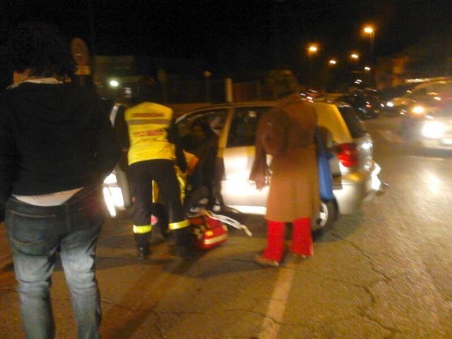 Voluntarios de Protección Civil del Servicio Municipal de Emergencias asistieron anoche a una mujer herida tras un accidente por colisión entre dos turismos producido junto al cruce de las calles Ricote y San Antonio, frente a la Sala de Lectura "José María Munuera y Abadía", en la urbanización "El Parral" de Totana.