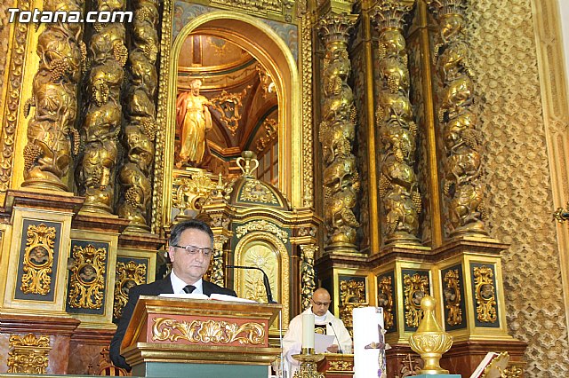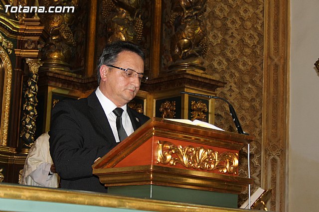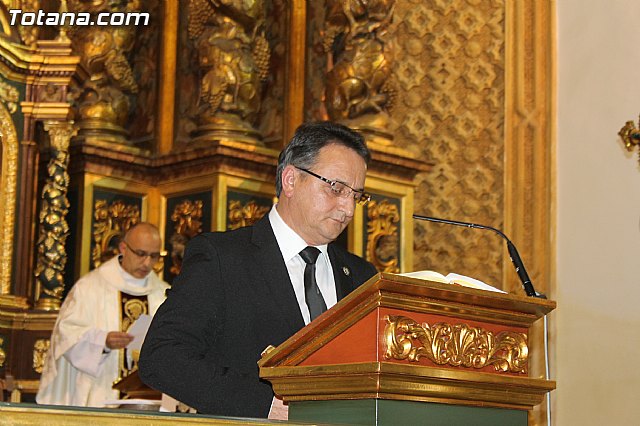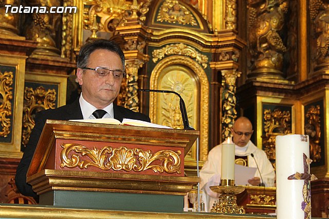 Don Antonio Martínez Belchí, Presidente electo del Ilustre Cabildo Superior de Procesiones de Totana desde noviembre de 2013, juró su cargo el pasado sábado, 1 de febrero de 2014 durante la misa de 19:00 horas en la Parroquia de Santiago el Mayor de Totana.
