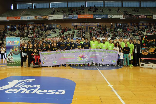 Hoy, domingo 23 de Febrero, la Asociación de Enfermedades Raras D'Genes, la Asociación de Familiares y Afectados de Lipodistrofias AELIP, junto con la Federación Española de Enfermedades Raras FEDER en su delegación de Murcia, han participado en la vigésimo jornada deportiva del UCAM Murcia jugada en el Palacio de los Deportes de Murcia contra el Unicaja.