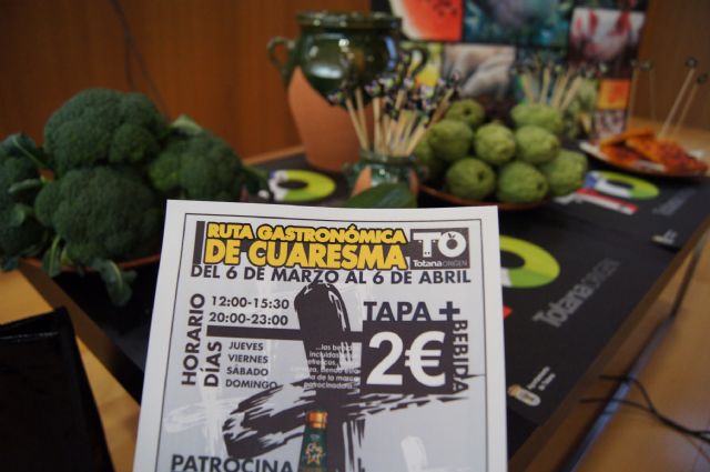La Asociación de Hosteleros de Totana, en colaboración con el Ayuntamiento de Totana, han organizado del 6 de marzo al 6 de abril, la Primera Ruta Gastronómica de Cuaresma "Totana Origen" en la que las tapas serán confeccionadas con productos locales para fomentar el consumo de los productos en origen de la localidad.