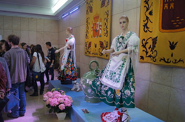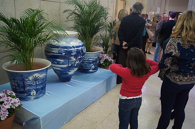 La empresa totanera “Alfar Tudela” expone desde el pasado viernes tinajas típicas de cerámica en la sede de la Delegación del Gobierno que están pintadas con los mismos colores y dibujos de los refajos de los trajes huertanos, y que permanecerá durante la Semana Santa y Fiestas de Primavera.