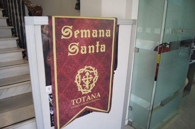 Las banderolas presentan el lema "Semana Santa Totana. Interés Turístico Regional" y están ilustradas con los escudos del Ayuntamiento de Totana y el Ilustre Cabildo Superior de Procesiones en cada uno de los lados, respectivamente.