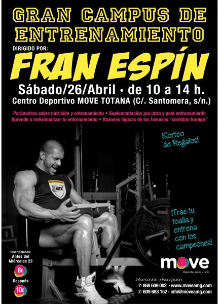 El próximo sábado 26 de Abril Move realizará un Campus de Entrenamiento dirigido por el prestigioso culturista y entrenador Fran Espín.