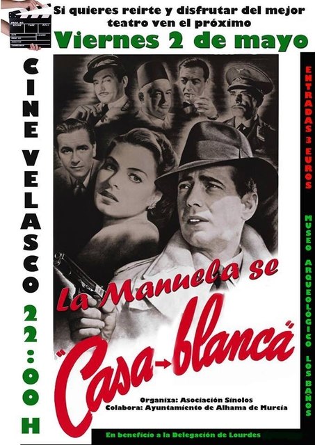 El próximo viernes día 2 de mayo a las 22h y en el marco de fiestas "Los Mayos 2014" se reestrenará en el Cine Velasco de Alhama de Murcia la cómica obra: LA MANUELA SE CASA
