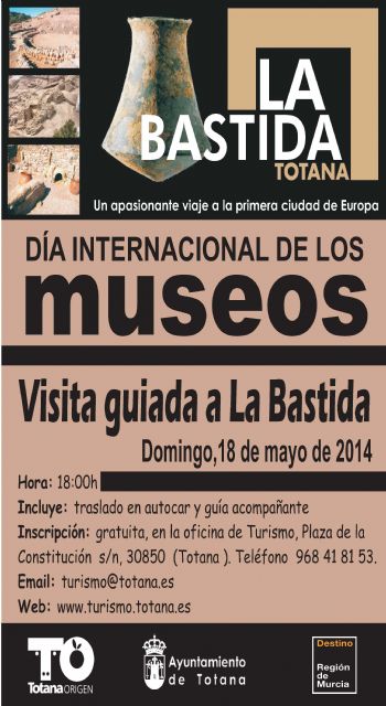 La concejalía de Turismo celebra el Día Internacional de los Museos con una jornada de puertas abiertas en el Yacimiento Argárico de La Bastida que tendrá lugar el próximo domingo 18 de mayo. El Ayuntamiento ha ofertado dos visitas guiadas gratuitas, con traslado en autobús incluido, para conmemorar esta fecha con el fin de que los vecinos de Totana conozcan el trabajo de reconstrucción que se ha llevado a cabo en el complejo.