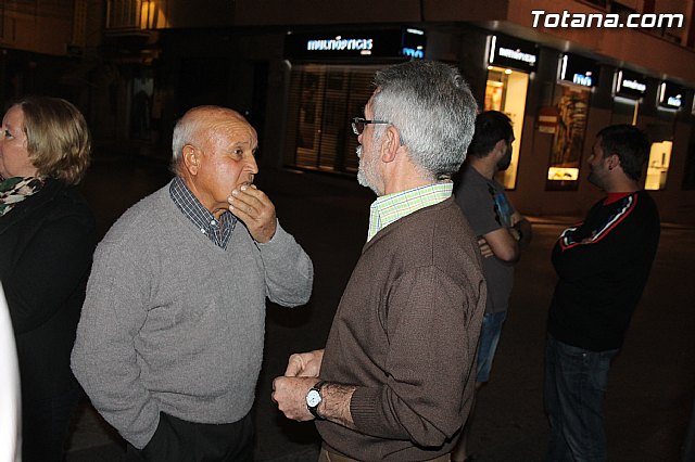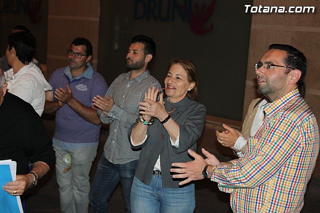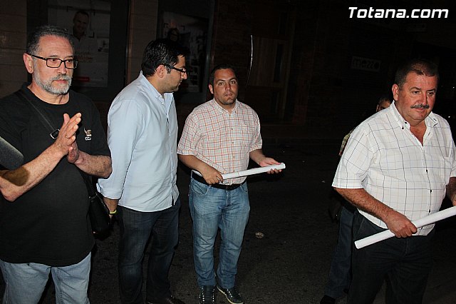 Representantes de los tres partidos políticos PP, PSOE e IU-Verdes con representación en el Ayuntamiento de Totana y que concurren a las elecciones europeas de próximo día 25 de mayo arrancaron en la pasada medianoche la campaña electoral con la tradicional pegada de carteles en la avenida Rambla de La Santa.
