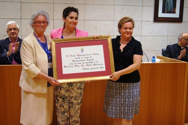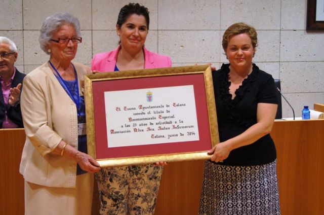 La Asociación "Nuestra Señora Salus Infirmorum" de Totana recibió ayer el Título de Reconocimiento Especial por los 25 años de actividad, en reconocimiento a su trayectoria de servicio socisanitario en este municipio, dando respuesta al acuerdo unánime del pleno que se aprobó en mayo del año pasado.