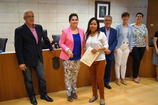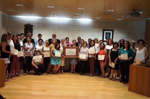 La alcaldesa hizo entrega del pergamino conmemorativo a la presidenta y vicepresidenta de esta asociación, Joaquina Lucerga y María José García López.