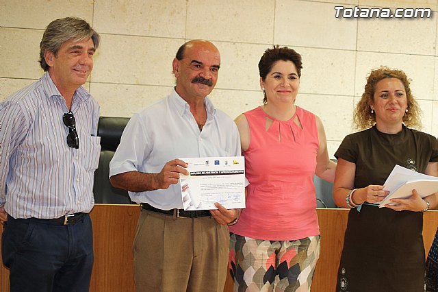 Miralles realizó estas declaraciones, acompañado por la alcaldesa de Totana, Isabel María Sánchez, durante la entrega de diplomas de la Asociación 'El Candil' a 26 personas que concluyeron los cursos sobre técnicas y búsqueda de empleo y sobre formación ocupacional de limpieza en edificios y grandes superficies.