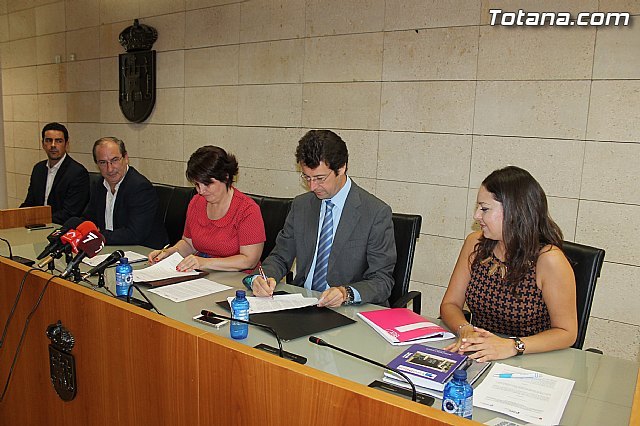 La alcaldesa de Totana, Isabel María Sánchez, y el consejero de Industria, Turismo, Empresa e Innovación, Juan Carlos Ruiz, han firmado el convenio de colaboración "Municipio Emprendedor" a través del cual se favorecen y facilita el nacimiento del empleo y la consolidación de actividades empresariales.
