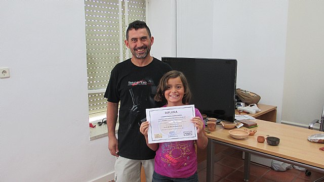 También pudieron elaborar pequeños objetos de cerámica y reproducciones de monedas. Para finalizar esta divertida actividad en la que todos disfrutaron se les hizo entrega de un diploma en el que se acredita que la formación de estos niños como arqueólogos ya ha comenzado.