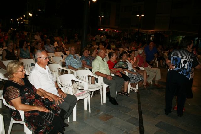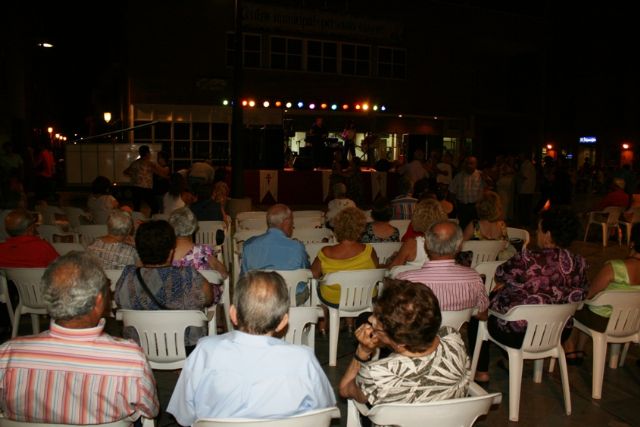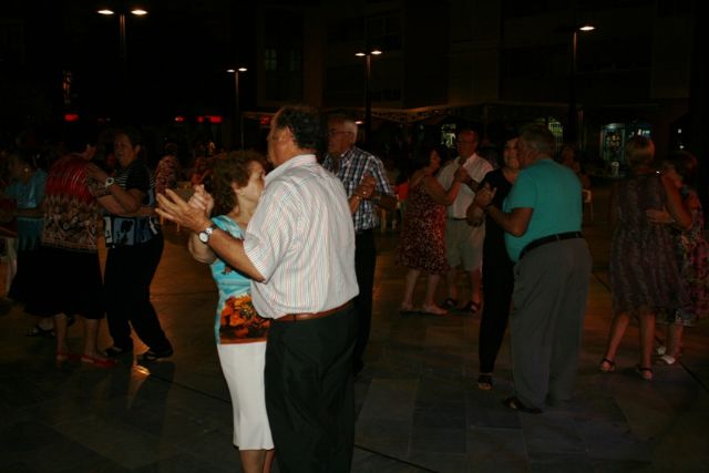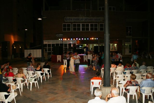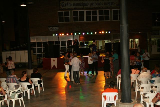 La actuación del grupo musical "Aires Latinos" congrega a numerosas personas mayores en la plaza de la Balsa Vieja, que disfrutaron de temas de todos los géneros musicales hasta bien entrada la madrugada.