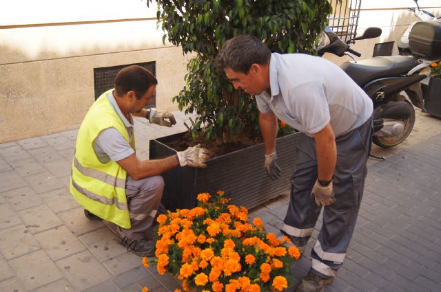 Las flores se colocarán en parterres, maceteros y farolas ornamentales de las plazas de la Constitución, Balsa Vieja y Santiago por donde trascurrirá la procesión del patrón Santiago el próximo viernes por la tarde.