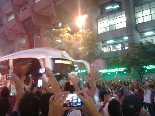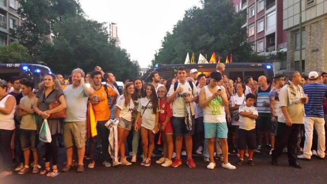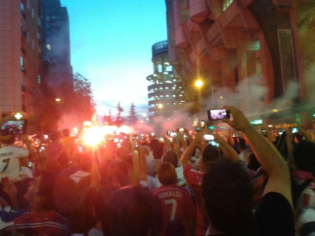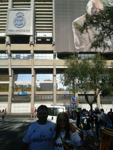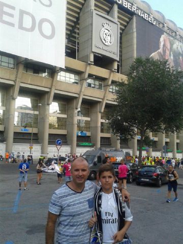 Más de ochenta aficionados madridistas se desplazaron este martes al Bernabéu para presenciar el partido de ida de la final de la Super Copa de España en un viaje organizado por la Peña Madridista La Décima/ Agustín Herrerín.